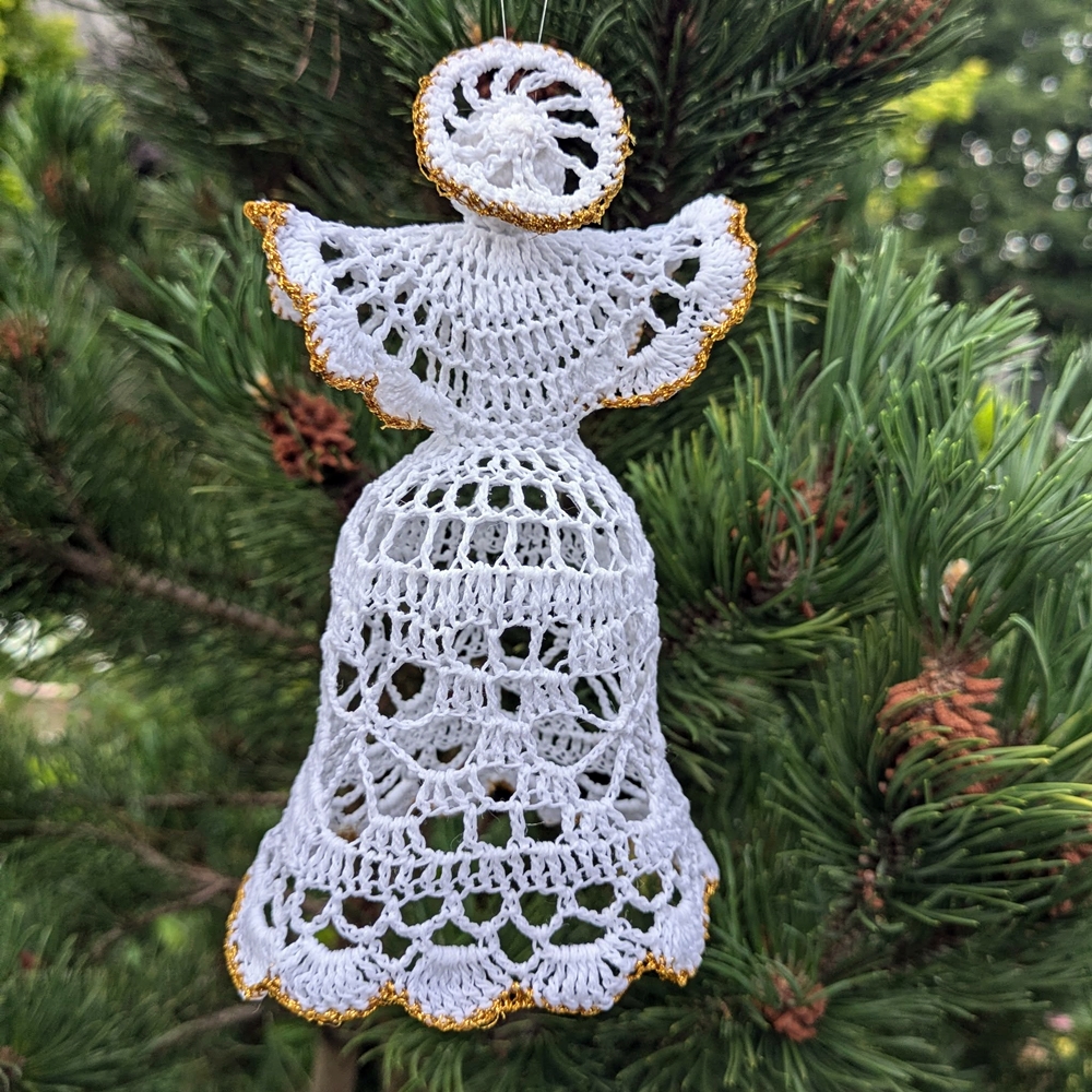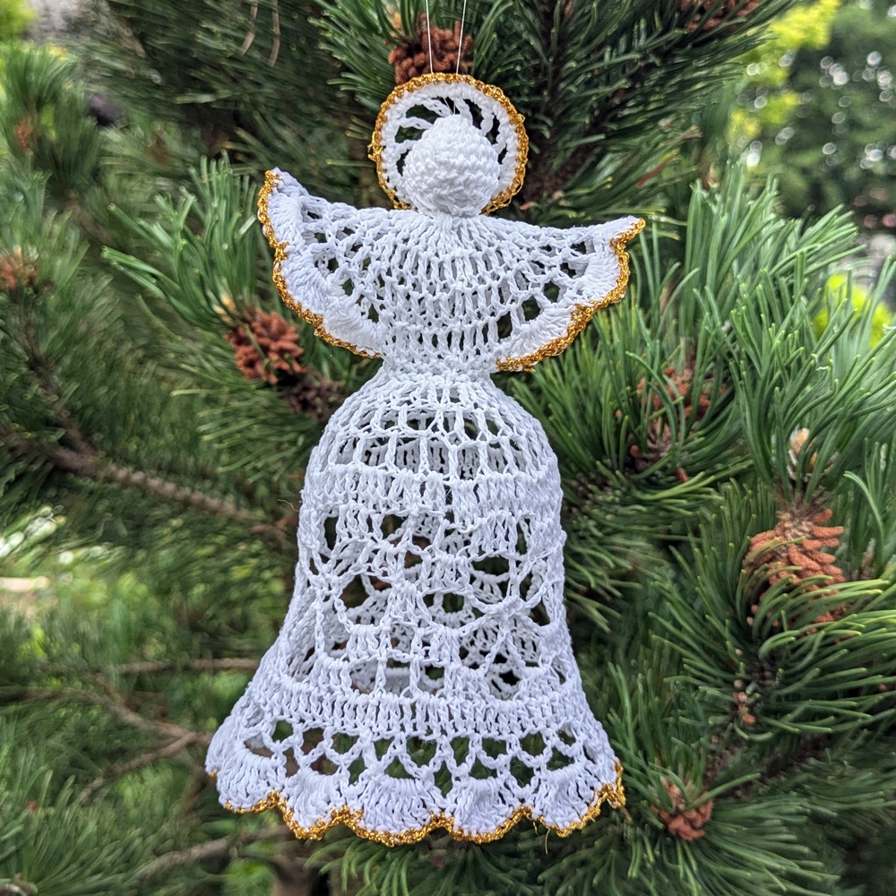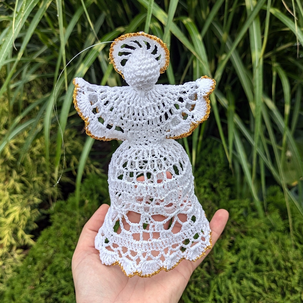 Szydełkowy aniołek – ręcznie wykonana ozdoba świąteczna.