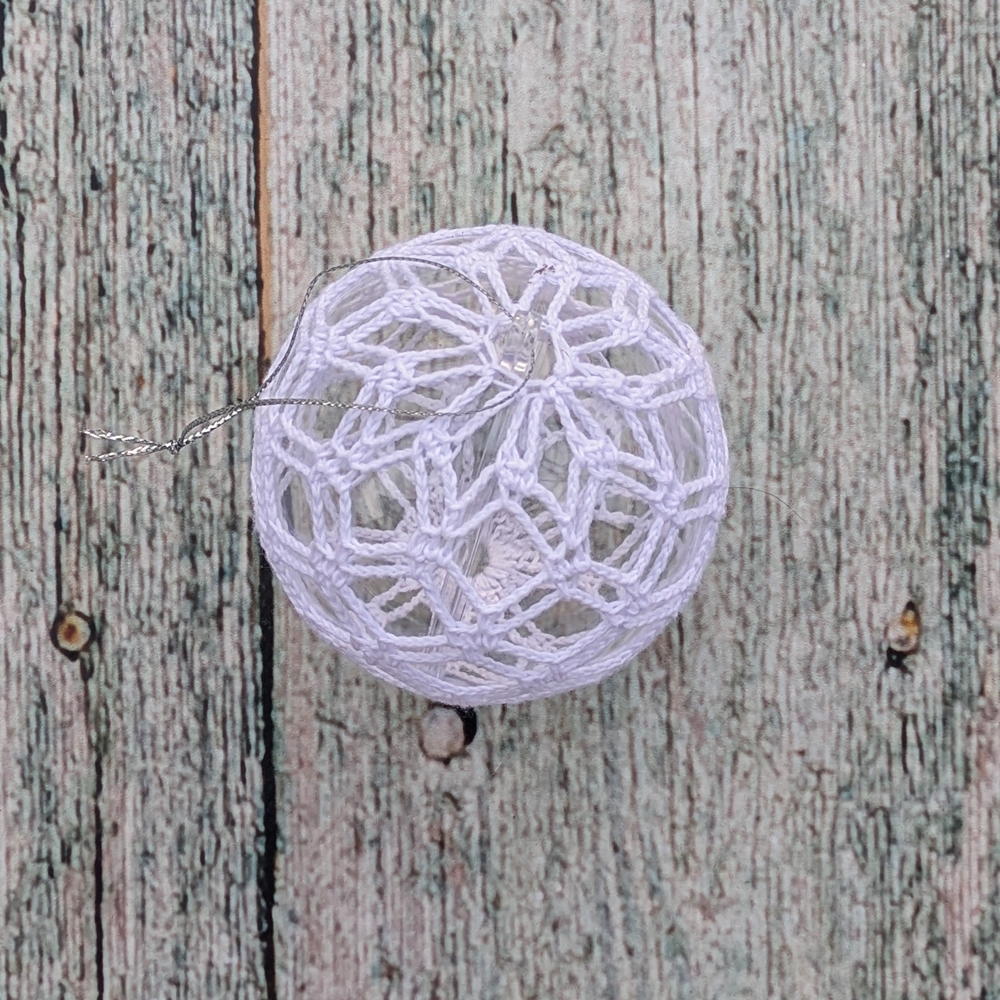 Szydełkowa bombka. 100% handmade na akrylowej kuli.