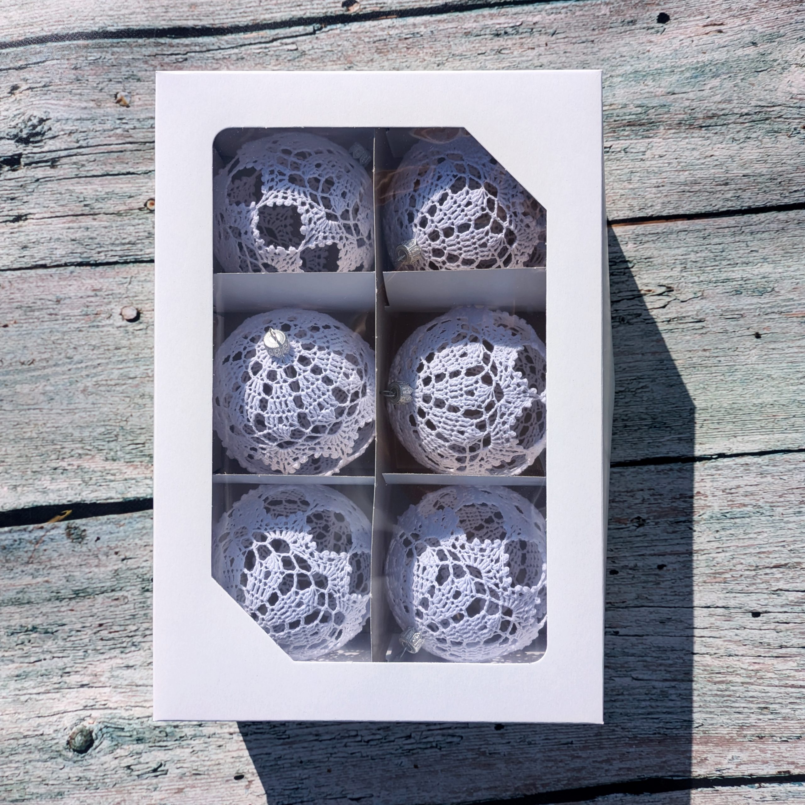 Zestaw 6 sztuk szydełkowych bombek. 100% handmade.