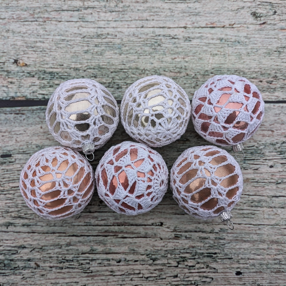Zestaw 6 sztuk szydełkowych bombek. 100% handmade.
