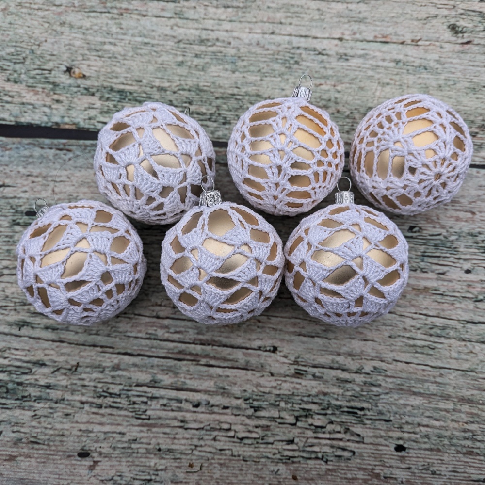 Zestaw 6 sztuk szydełkowych bombek. 100% handmade.